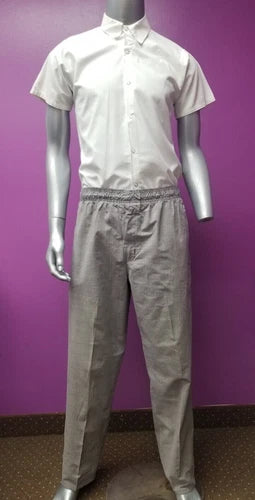 These gray plaid chef pants are the perfect addition to your work wardrobe. With an elastic waist, zipper and draw-string, they provide both comfort and style. Made from polycotton, these pants are perfect for men and women who want to look sharp while staying comfortable during their workday. The pants are designed with a unique gray plaid pattern, making them a great choice for those who want to stand out from the crowd. They are perfect for use in restaurants and food service establishments, as well as for business and industrial purposes. Made in Guatemala, these pants are sure to become a favorite in your collection.
